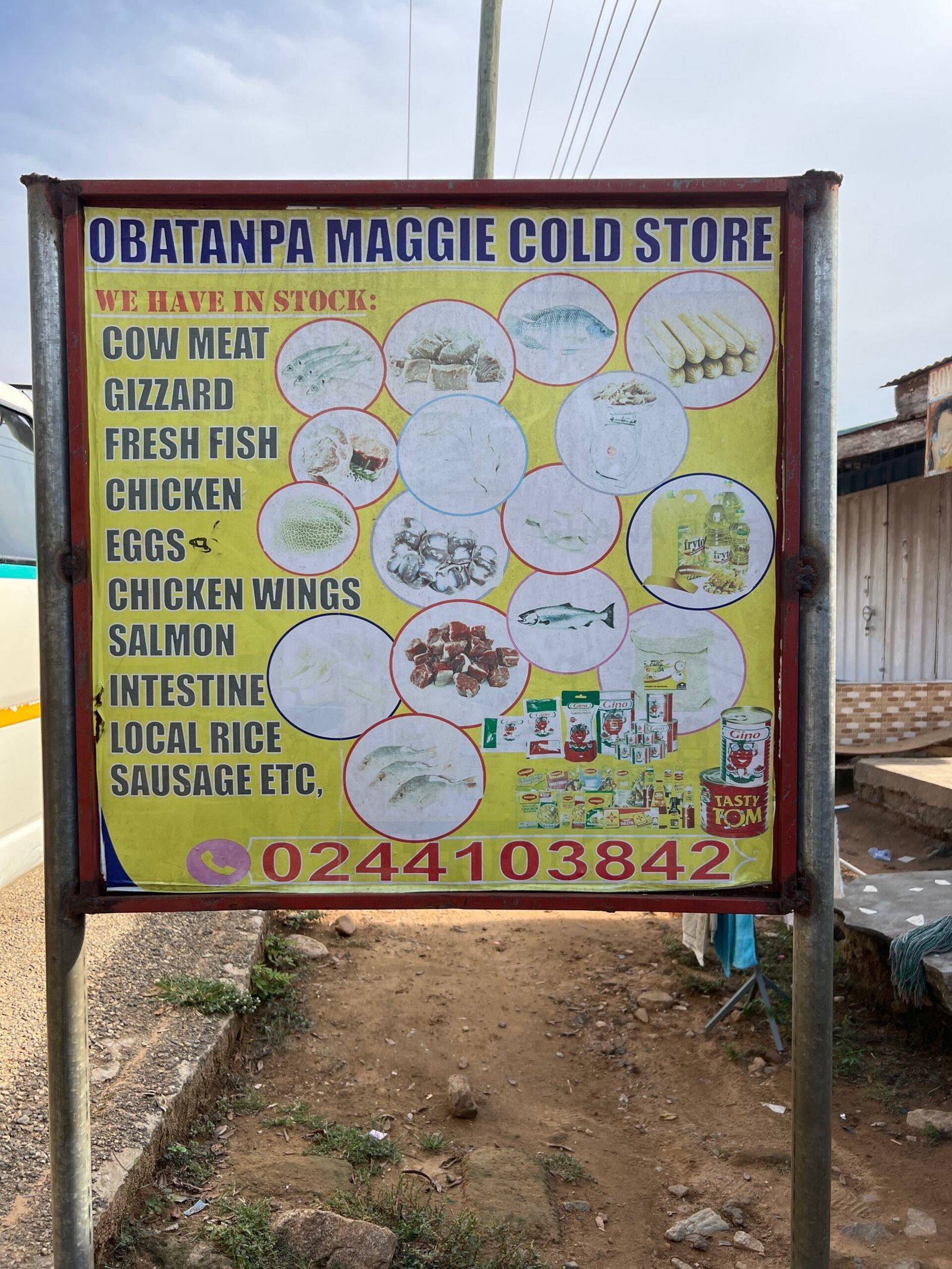 We have in stock cow meat, gizzard, fresh fish, chicken, eggs, chicken wings, salmon, intestine, local rice.